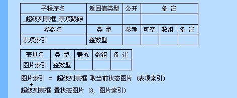 语法: 无返回值 超级列表框.置状态图片 (表项索引,[状态图片索引])