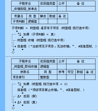 条件语句判断当前选中项目的项目索引。条件成立信息框提示,返回假禁止项目收缩,否则返回真收缩项目。