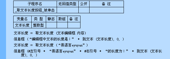通过“取文本长度”命令获取指定文本的长度。注意,一个汉字的长度为2。