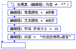 此段语句运行时,如果编辑框中的的内容不为空,就运行如果真命令下面的所有命令,即改变编辑框的一系列属性,最后将编辑框的内容改为“欢迎使用e语言” 。