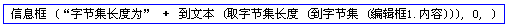 将文本型数据转换到字节集型,再用取字节集长度命令取出它的长度,放入信息框中。