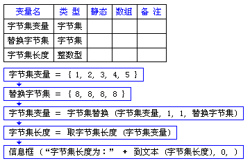 语法: 字节集 字节集替换 (欲替换其部分的字节集,起始替换位置,替换长度,[用作替换的字节集])
