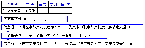 一次性替换全部字节集中需要替换的所有部分,例程中所替换的是字节集中{1,3,1,3,1,3}中的{1},把它们全部替换成{},从第一个位置开始替换,最后一个参数填入需要替换的次数,如果默认就为全部可能的替换,结果应该为{1,1,1}。