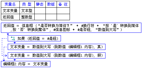 消息框询问用户,选择转换简体或繁体,返回值为整数型变量,保存用户按下按钮类型(是钮或否钮)。返回值为是钮,参数二为真,为否钮,参数二为假。
