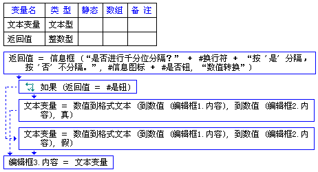 消息框询问用户,选择是否分隔,返回值为整数型变量,保存用户按下按钮类型(是钮或否钮)。返回值为是钮,参数三为真,否钮,参数三为假。