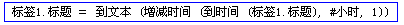 第一个参数填入需要增减的时间,这里我们把标签1.标题中的数据转换到日期时间型,第二个参数可以填入需要增减的时间部分,这里我们用小时演示,增加值我们取1,这样每执行一次增减时间命令,参数一的时间就比上一次增加1小时。
