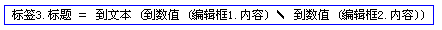 将编辑框1.内容和编辑框2.内容转换到双精度小数型,再将两个转换后的数据整除,将返回的双精度小数型数据转换到文本型,放入标签3.标题中。