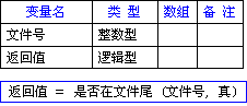 语法: 逻辑型 是否在文件尾 (文件号,[是否为判断文本已读完])