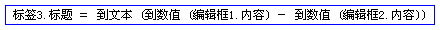 将编辑框1.内容和编辑框2.内容转换到双精度小数型,再将两个内容相减。把返回的内容转换成文本型,放入标签3.标题中。