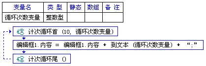 语法: 无返回值 计次循环首 (循环次数,[已循环次数记录变量])