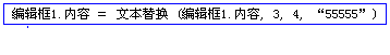 语法: 文本型 文本替换 (欲被替换的文本,起始替换位置,替换长度,[用作替换的文本])