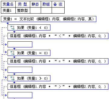 语法: 整数型 文本比较 (待比较文本一,待比较文本二,是否区分大小写)