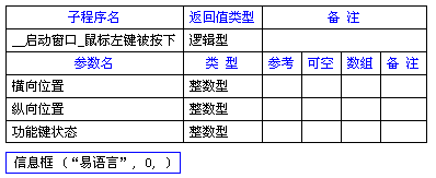 语法: 逻辑型 _窗口组件_鼠标左键被按下 (横向位置,纵向位置,功能键状态)
