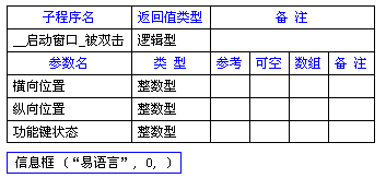 语法: 逻辑型 _窗口组件_被双击 (横向位置,纵向位置,功能键状态)